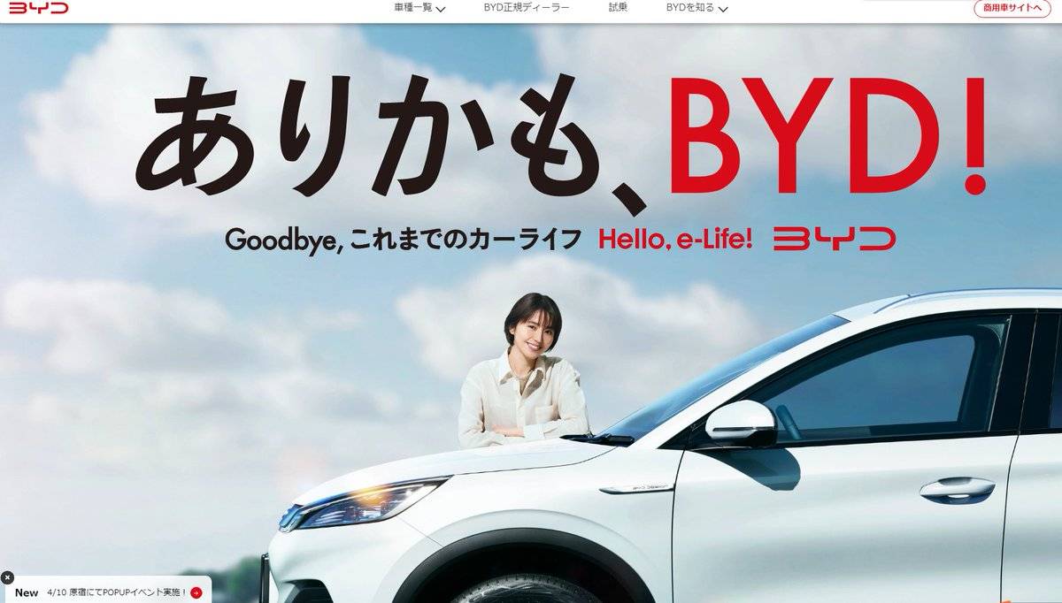 不过直到 2023 年,比亚迪才正式进入日本的乘用车市场,先后引进了 ATTO 3(元 PLUS)、海豚等车型,并邀请了国民女神长泽雅美代言。